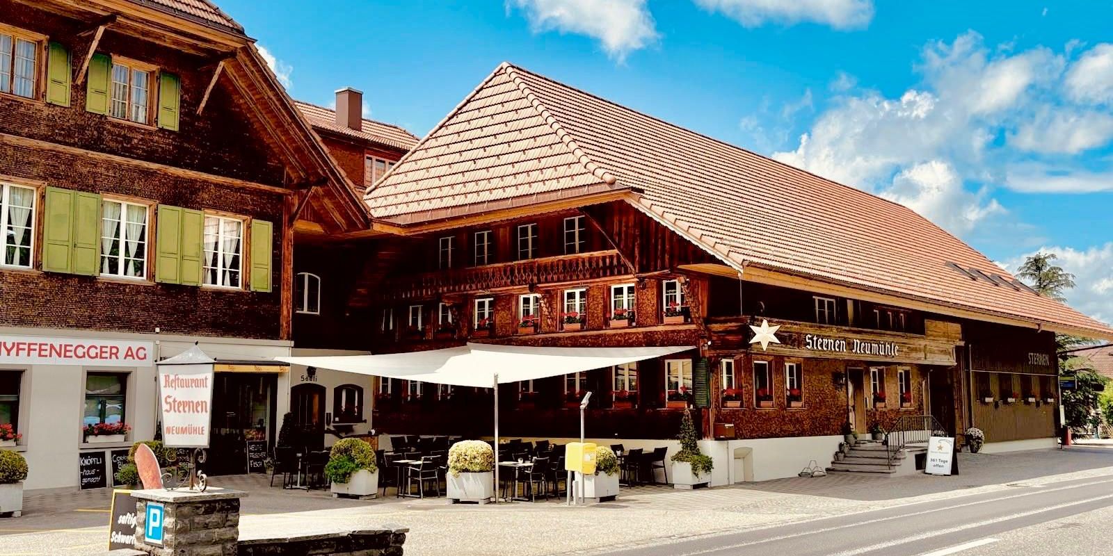 Kehren Sie ein bei uns im Restaurant Sternen Neumühle in Zollbrück, mitten im wunderschönen Emmental. Lassen Sie sich von unseren währschaften Emmentaler Spezialitäten verwöhnen und spüren Sie die Liebe zu regionalen Produkten, die wir von lokalen Produzenten beziehen. Unsere bekannten Fleischspezialitäten kommen direkt aus der eigenen Hausmetzgerei "Metzgerei Nyffenegger" von nebenan.