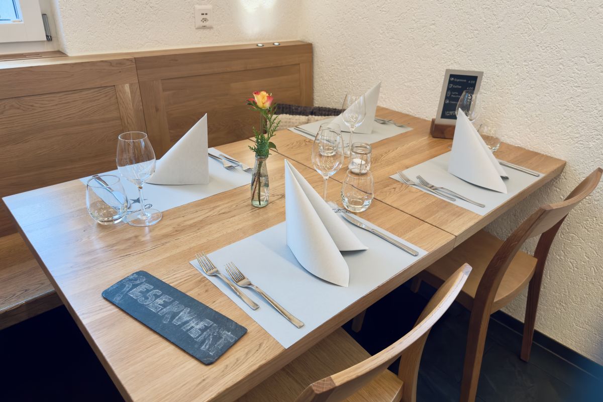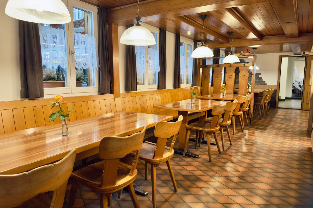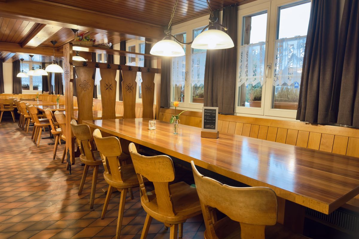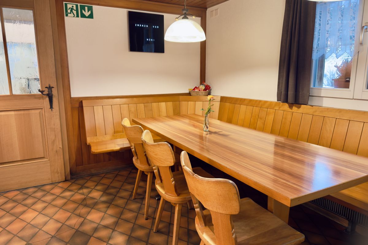 Im Speisesäli im Erdgeschoss kannst du in entspannter Atmosphäre leckere Gerichte geniessen. Hier geht's ums leibliche Wohl – egal, ob du ein feines Mittagessen, ein herzhaftes Abendessen oder einfach nur eine Tasse Kaffee geniessen möchtest. Unser freundliches Team sorgt dafür, dass Ihr Besuch bei uns ein besonderes Erlebnis wird.