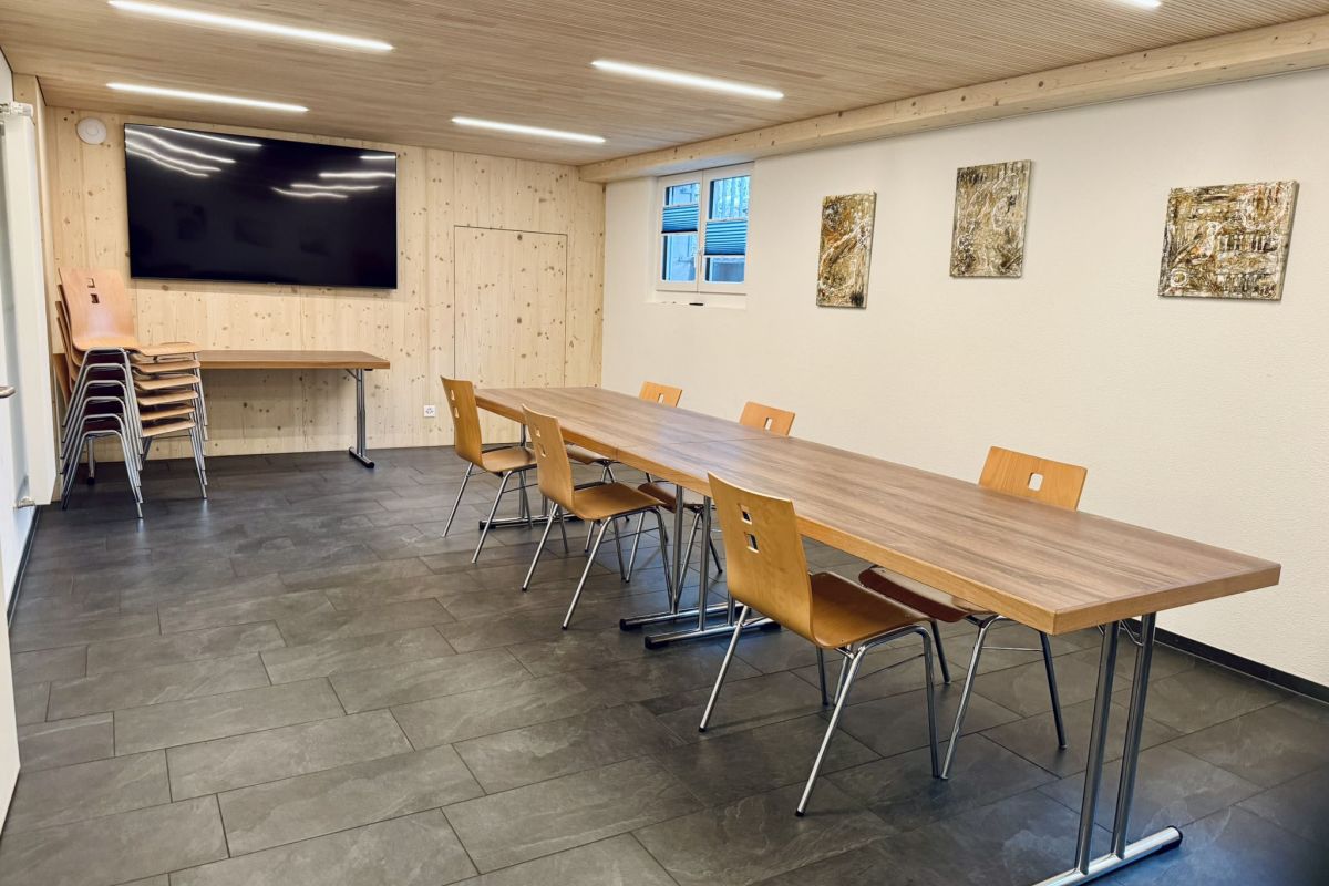 Die beiden Räume im renovierten Anbau bieten vielseitige Nutzungsmöglichkeiten. Jeder Raum fasst bis zu 50 Personen und ist ideal für kleinere Feiern oder Meetings. Zusammen ergeben sie eine Fläche für bis zu 100 Personen, perfekt für grössere Veranstaltungen. Die moderne Ausstattung und das stilvolle Design sorgen für eine angenehme Atmosphäre. Bei Bedarf kann die Trennwand zwischen den Räumen entfernt werden, um eine grössere, offene Fläche zu schaffen.