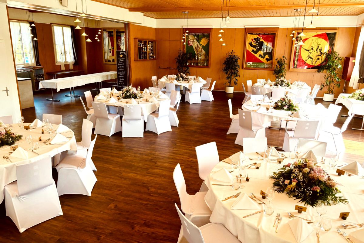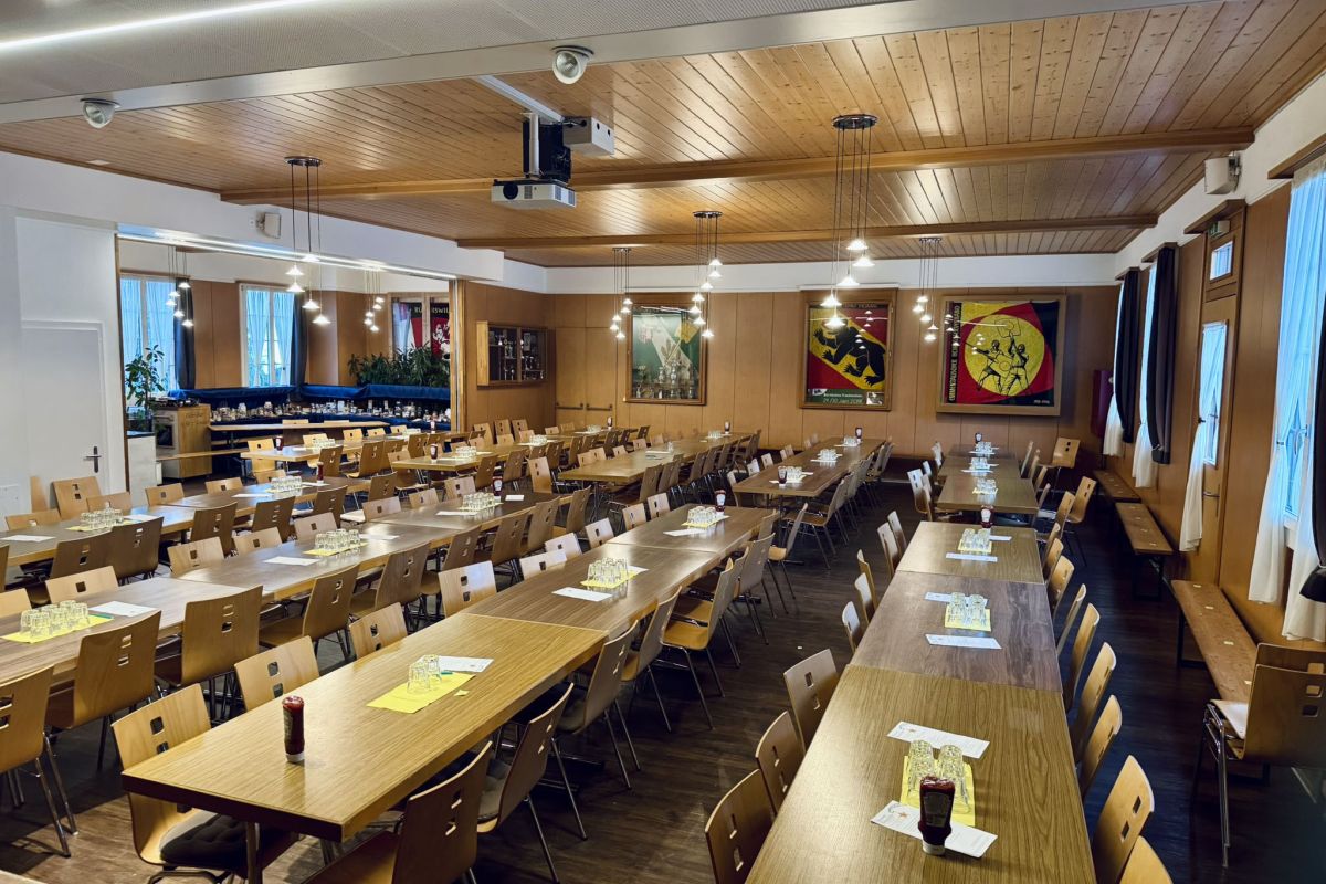 Feiern Sie im Sternen-Saal! Unser Saal im 1. Stock bietet Platz für bis zu 150 Personen und ist ideal für Geburtstagsfeiern, Taufen, Hochzeiten und Klassenzusammenkünfte. Während der Woche wird er von Vereinen genutzt, steht aber für Ihre besonderen Anlässe bereit. Kontaktieren Sie uns telefonisch oder per E-Mail für Ihre Reservierung. Wir freuen uns, Ihr Event zu einem Erfolg zu machen!