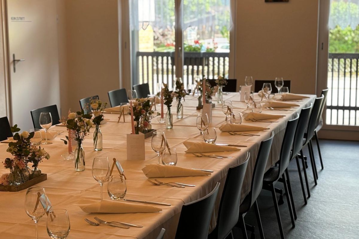 Planen Sie eine Feierlichkeit, ein Seminar oder ein Meeting? Unsere vielseitigen Räumlichkeiten bieten den perfekten Rahmen für Ihre Veranstaltungen. Im Neubau stehen zudem zwei weitere Räume zur Verfügung, die ideal für separate Gesellschaften genutzt werden können. Treten Sie ein und geniessen Sie unsere herzliche Gastfreundschaft!