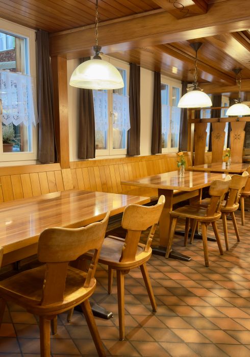Egal ob Sie einen grossen oder kleinen Anlass planen, bei uns finden Sie den idealen Rahmen. Unser Restaurant bietet viel Platz und unser Erdgeschoss ist selbstverständlich rollstuhlgängig eingerichtet.